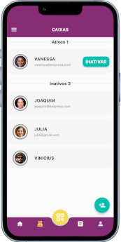 Através do usuário Administrador, crie contas específicas para cada caixa de sua empresa, e tenha total controle sobre eles. Os caixas recebem apenas o Pix e sua confirmação, eles não tem acesso a sua conta!
